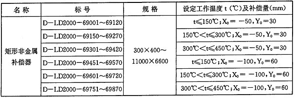 矩形非金屬補償器根(gēn)據不同(tóng)的工作溫度和補償量進行分類,編目如下: