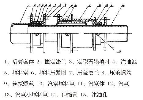 在國內近期,生產出LTW高溫堵漏劑,它的耐(nài)溫30O——600℃,工作極限壓力是10MPa。鞏義市鑫科管道設備廠將高(gāo)溫堵漏劑應用(yòng)在補償器上,將直流式無推(tuī)力補償器,改製(zhì)成(chéng)注油式直流(liú)介質無推力補(bǔ)償器,解(jiě)決了補償器長期工作,出現微小(xiǎo)的滲漏問題。鞏義市晨光波紋管公司將LTW高溫堵漏劑(jì),用60MPa。的高壓(yā)注射槍,將油(yóu)劑注射到填料室內,使填料與料室內徑和伸縮管外徑壓緊,油劑本身無毛細管,又有熱脹冷縮的性(xìng)質,故造成補償(cháng)器長(zhǎng)期工作(zuò)中,不產生滲漏。